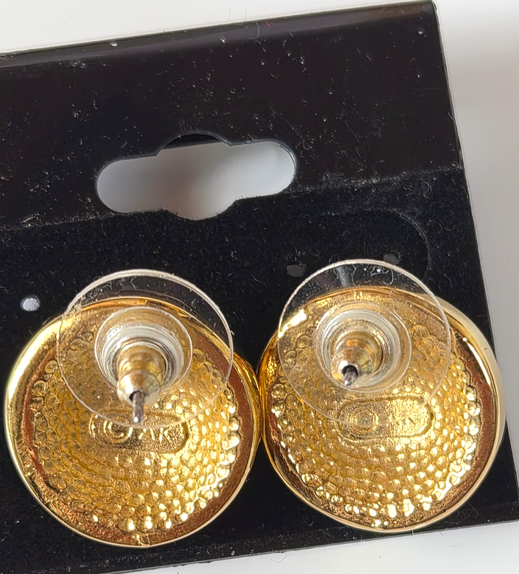 These Vintage Anne Klein gold-tone Faux Pearl Pierced Earrings are a classic accessory that exudes elegance and sophistication. Made in the United States, these round earrings feature a signed Anne Klein design and are adorned with imitation pearls in shades of gold, white, and silver. Measuring 5/8" in length, these vintage earrings are a timeless piece that can be worn for both casual and formal occasions, adding a touch of vintage charm to any outfit.