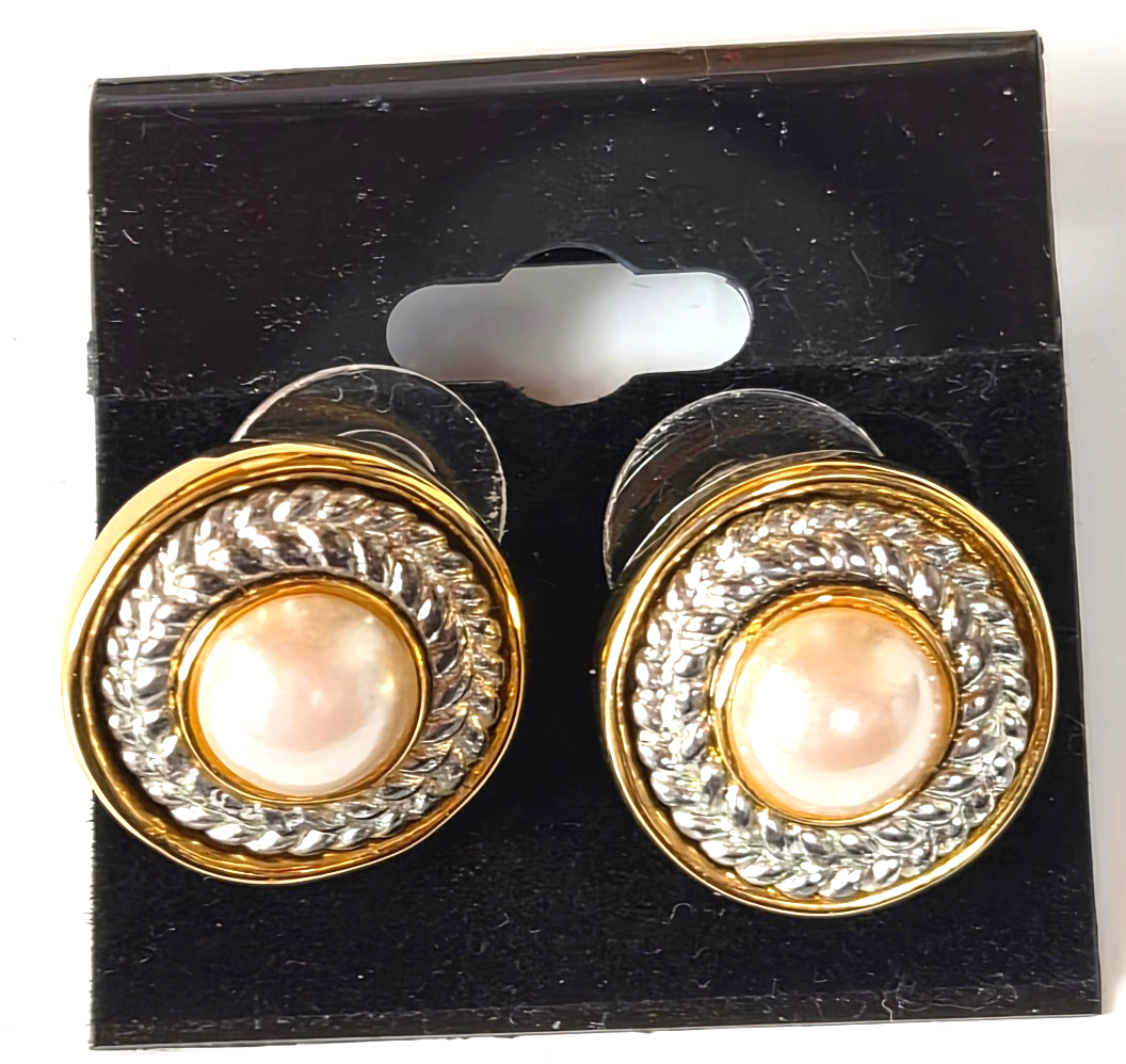 Vintage Anne Klein gold-tone Faux Pearl Pierced Earrings 5/8"