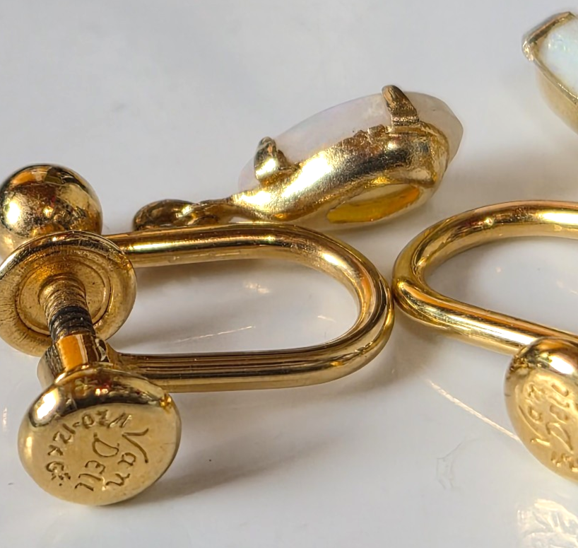 Vintage Signed Van Dell 12 kt gold filled Opal Screw-back Earrings 3/8" Long