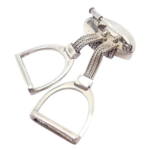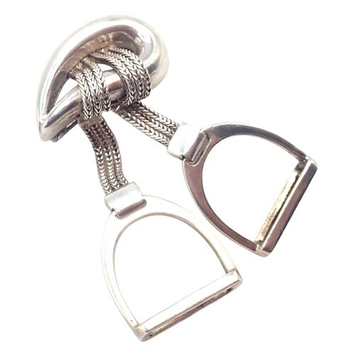 Elegant Hermes Sterling Silver Double Stirrup Brooch Pin inspired by the house?s equestrian heritage.