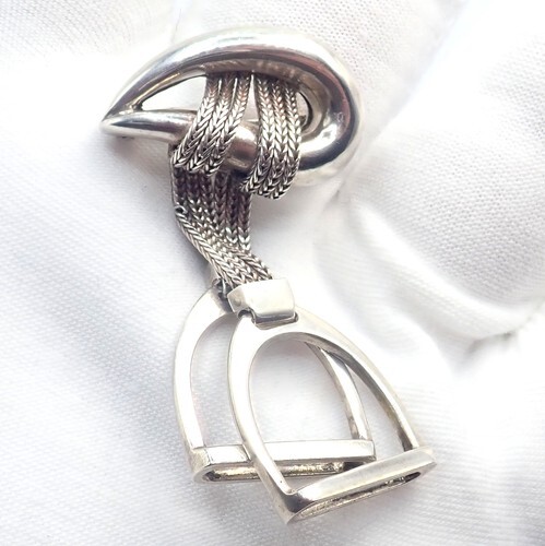 Authentic! Hermes Sterling Silver Double Stirrup Brooch Pin
