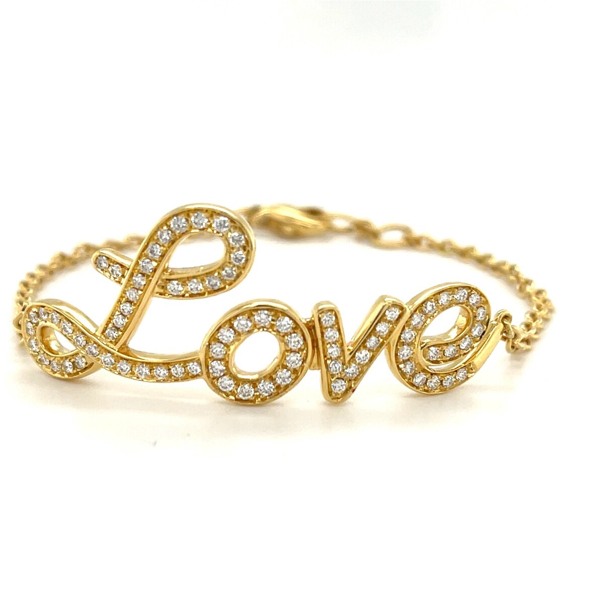 Roberto Casarin 18k Yellow Gold Script LOVE Plaque Chain Diamond Bracelet