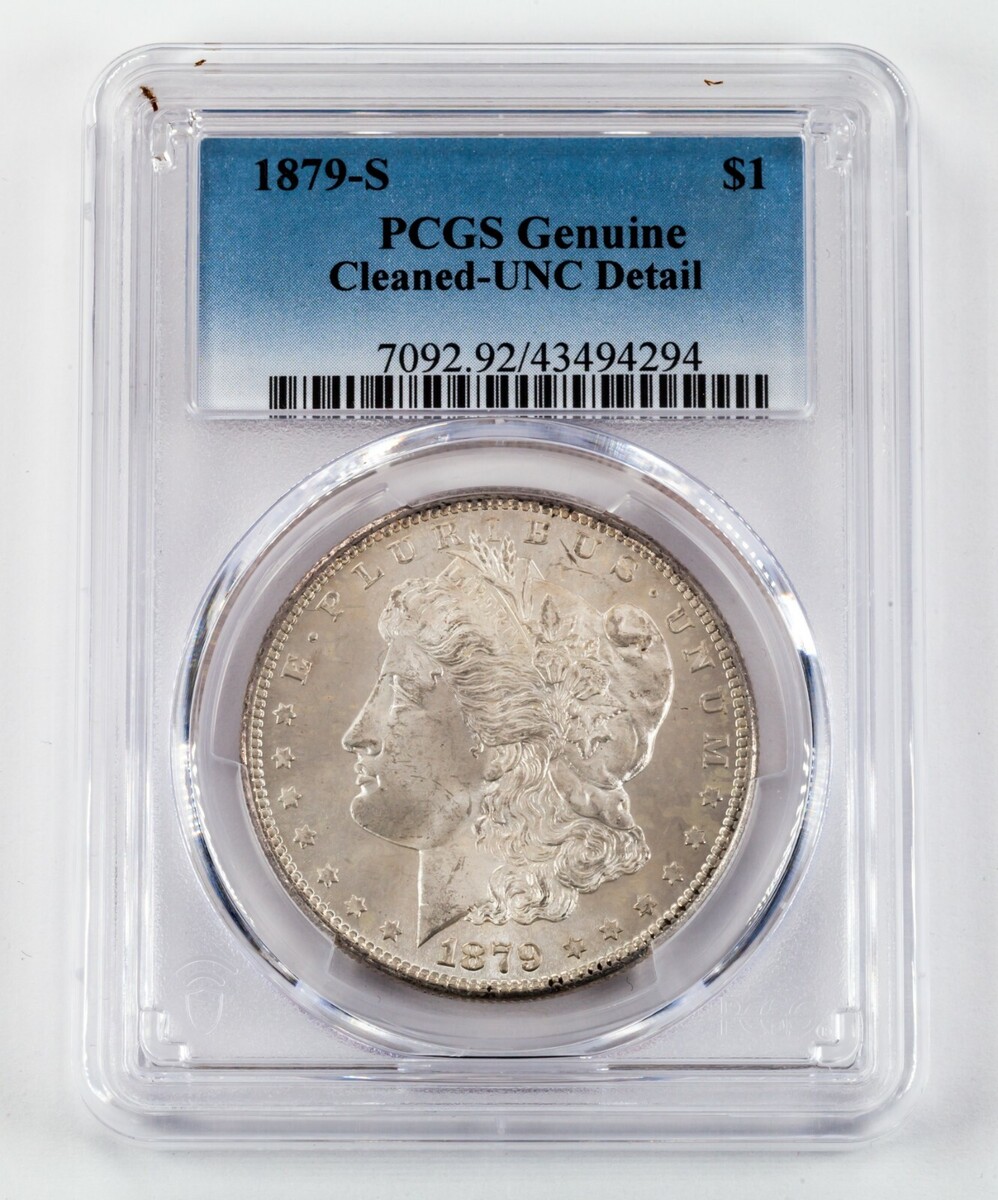 1879-S $1 Silver Morgan Dollar Graded by PCGS as UNC Detail - Cleaned