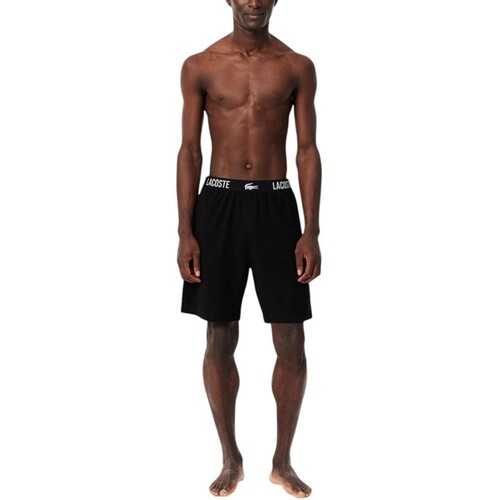 Lacoste Mens Straight Fit Logo Band Pajama Shorts Black-Size XL Cotton Blend