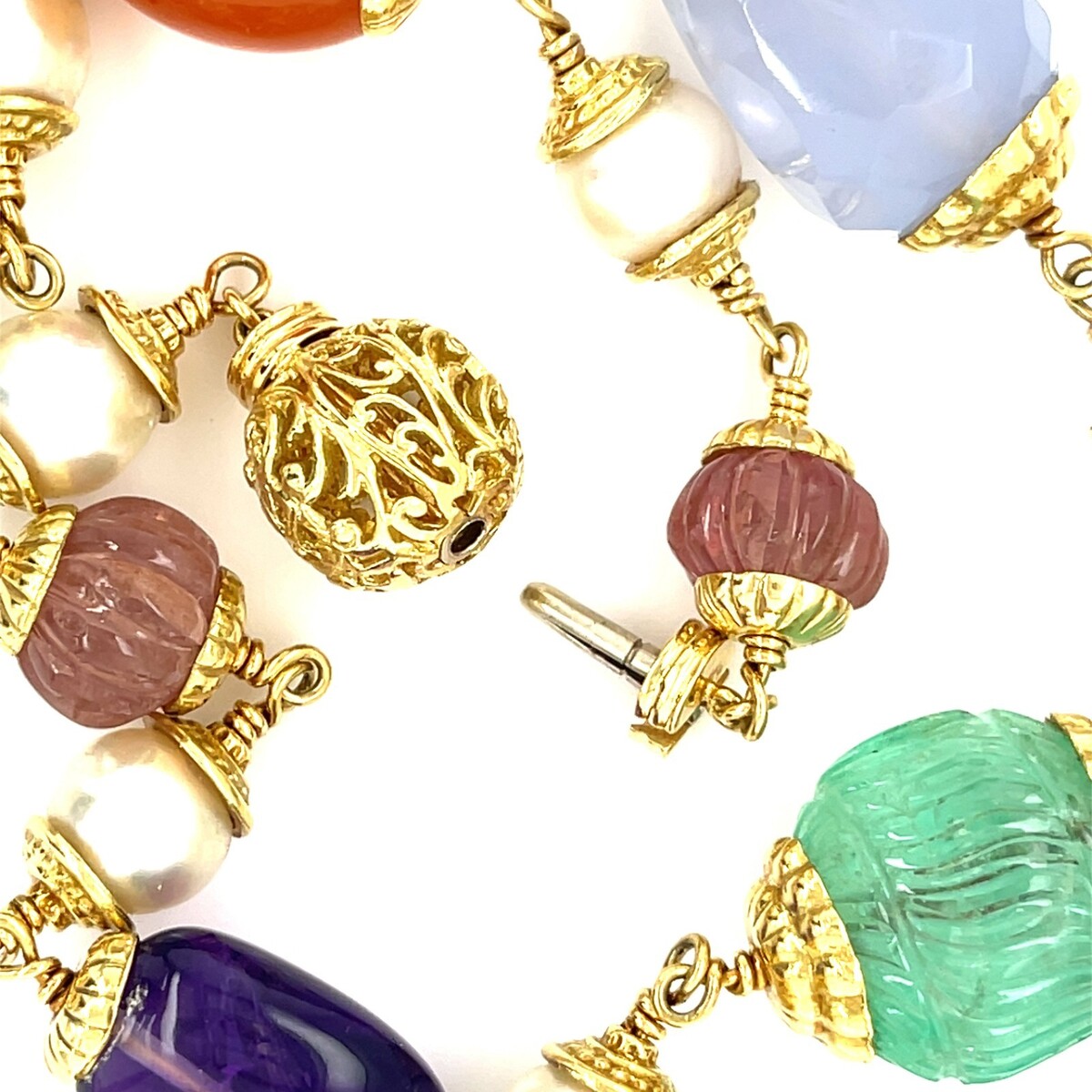 Features Alternating Cultured Pearls and Carved/Tumbled Semi-Precious Gemstones