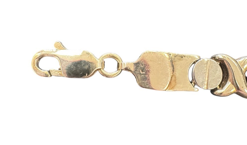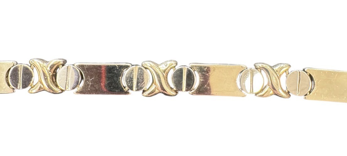 Type: AnkletWeight: 8.7Karat: 14ktMetal: Yellow GoldGender: UnisexStyle: XOXOSize / Length: 10"Owner applied: 14kWidth: 7mmCondition:UsedNotes:Some small bents from use