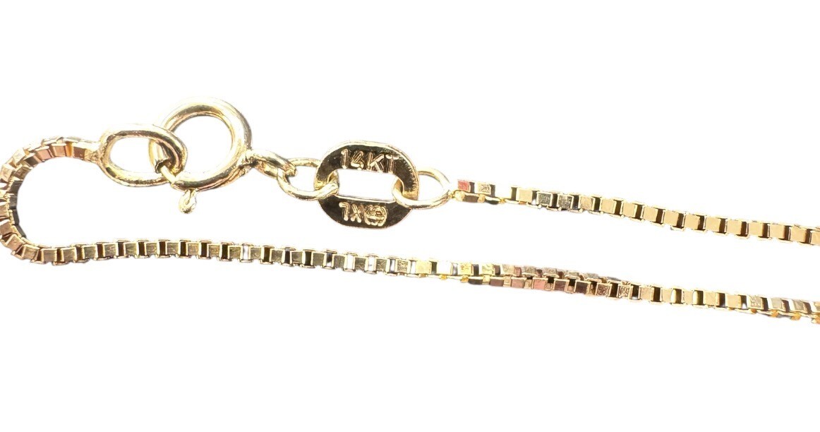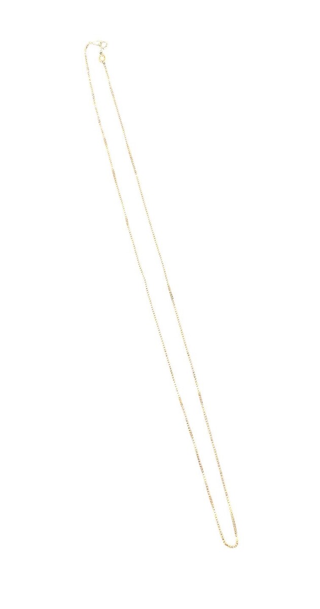 Type: ChainWeight: 1.3Karat: 14ktMetal: Yellow GoldGender: UnisexStyle: Box LinkSize / Length: 18Owner applied: 14KWidth: 1mmCondition:Used