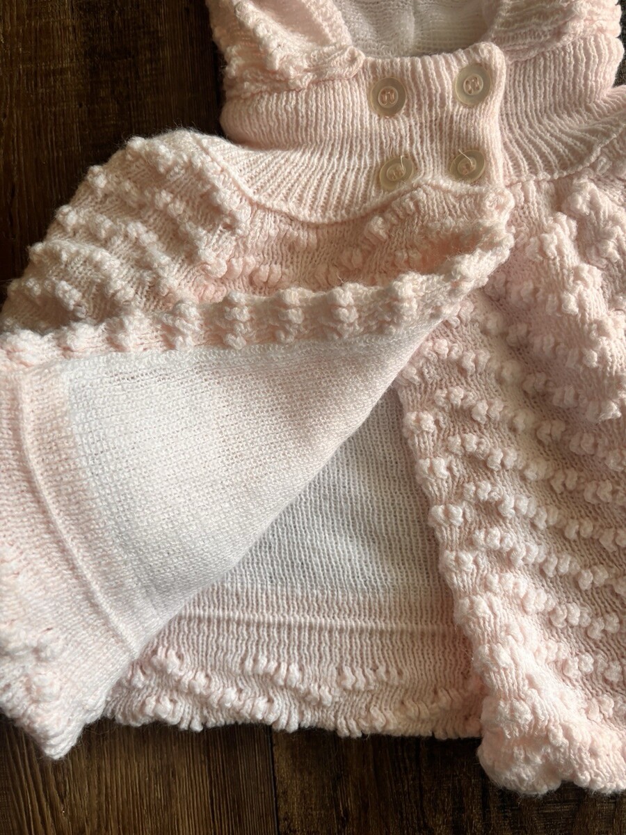 Excellent condition. Vintage 1980s baby hooded knit coat in soft blush pink.