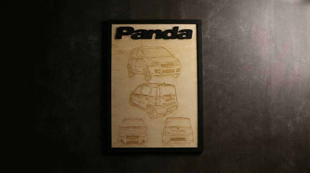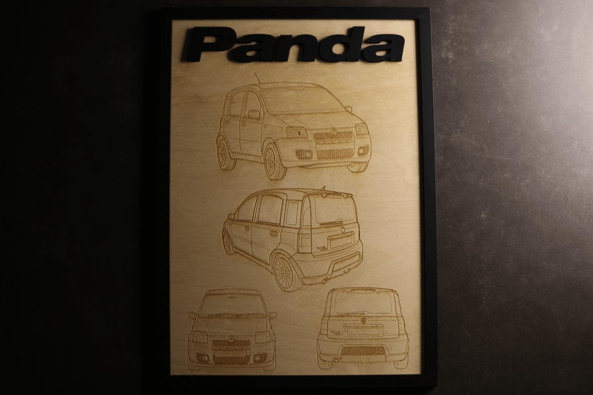 This isn't a generic print. Each piece is a bespoke commission featuring high-precision laser-etched blueprints of your car, topped with a bold, 3D raised nameplate for a premium, tactile finish.