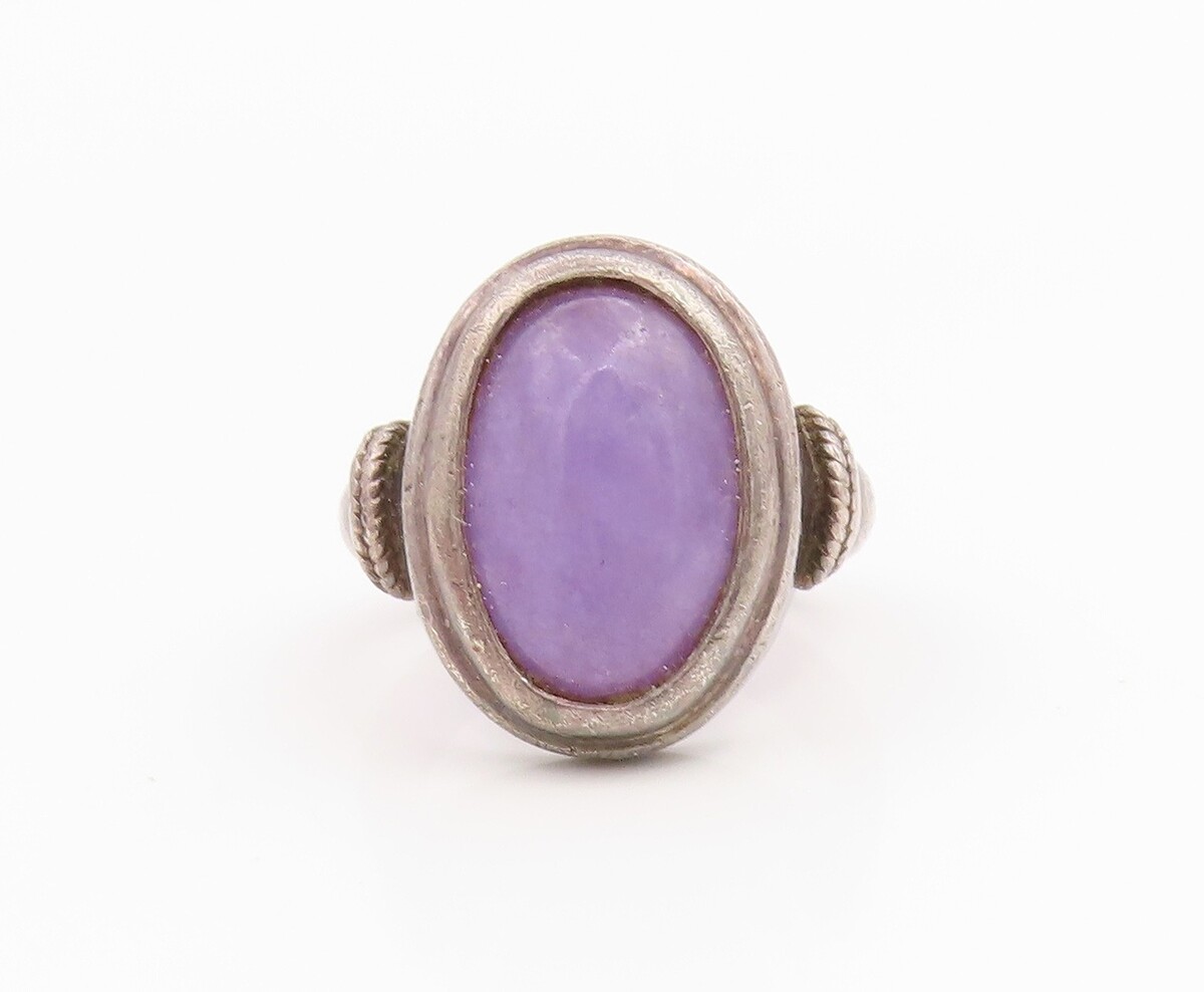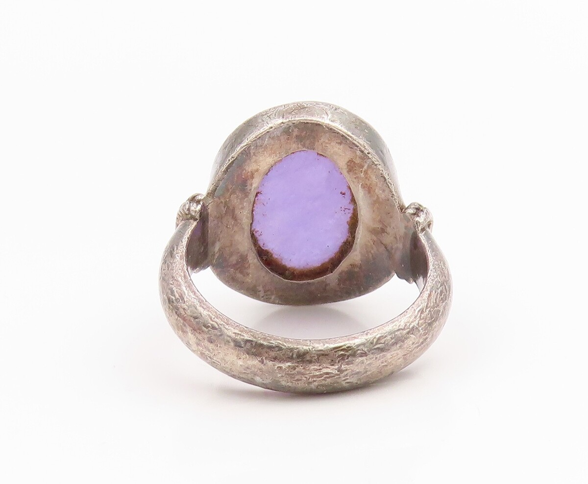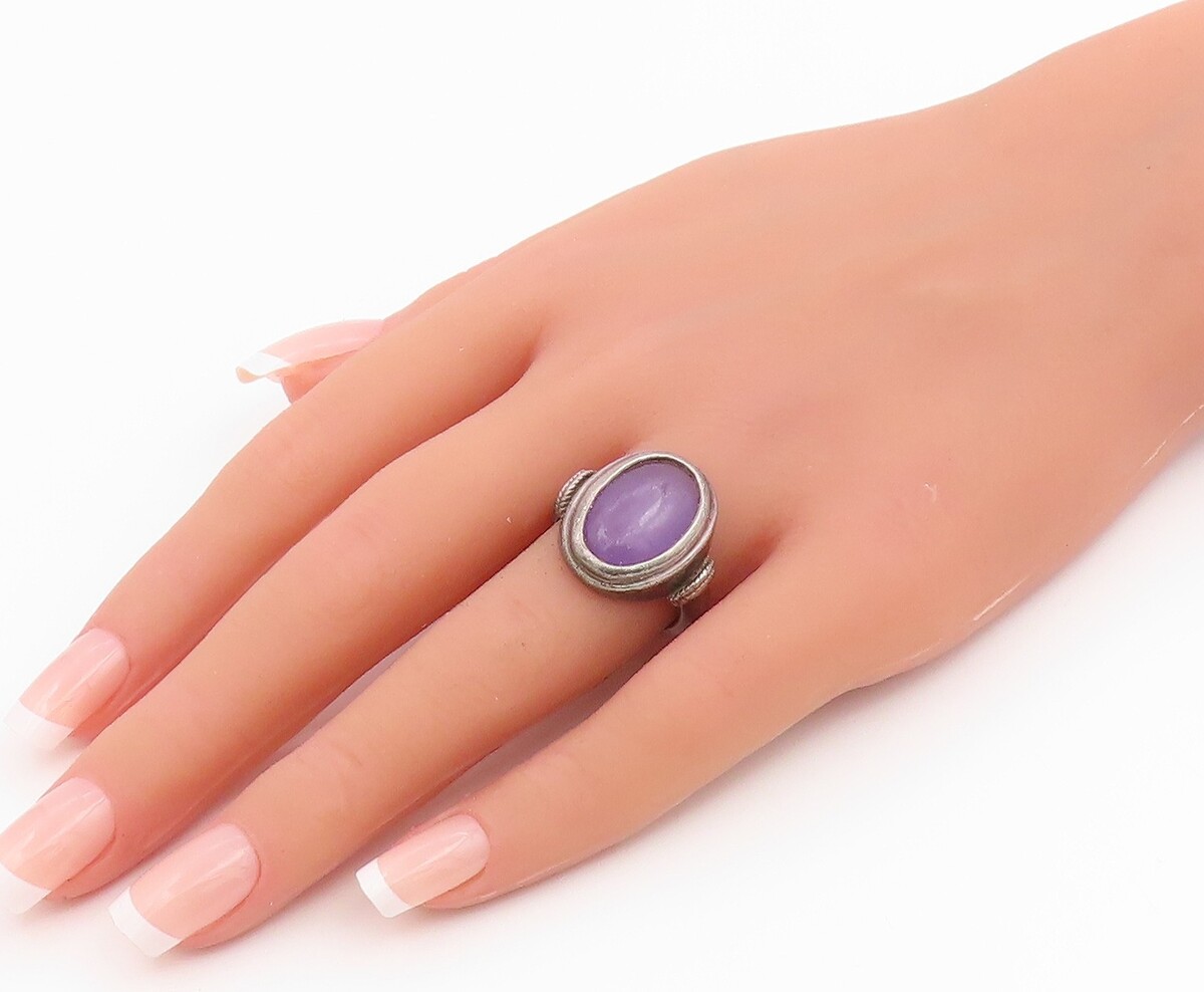 925 Sterling Silver Vintage Ring Cabochon Amethyst Statement Band Sz 6.5 RG35357
