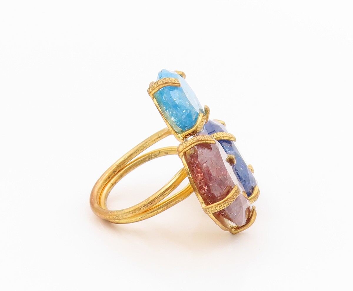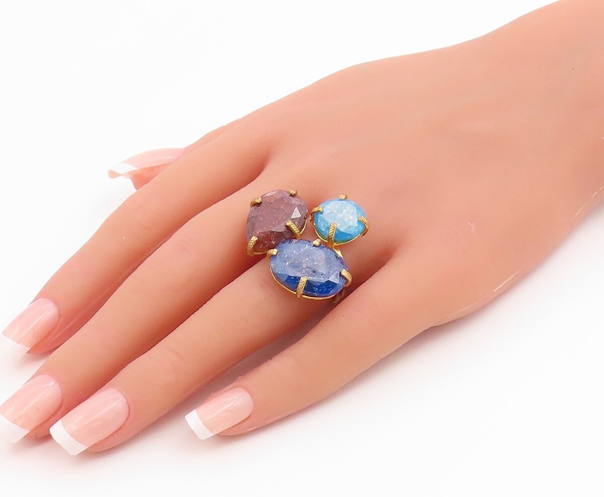 925 Sterling Silver Vintage Ring Gold Plated Mystic Gemstone Band Sz 7 RG35387