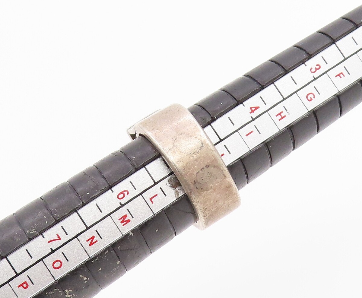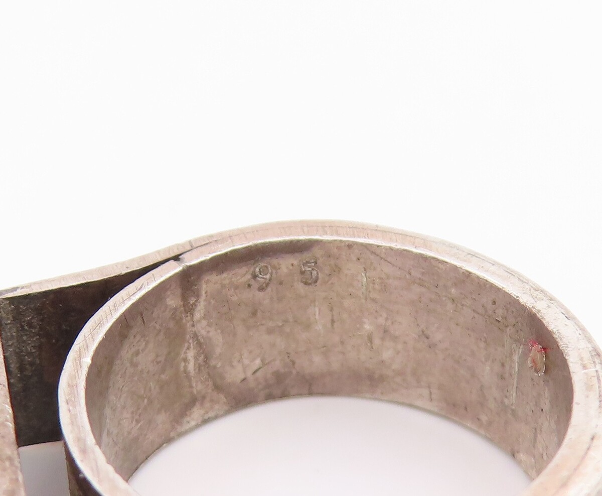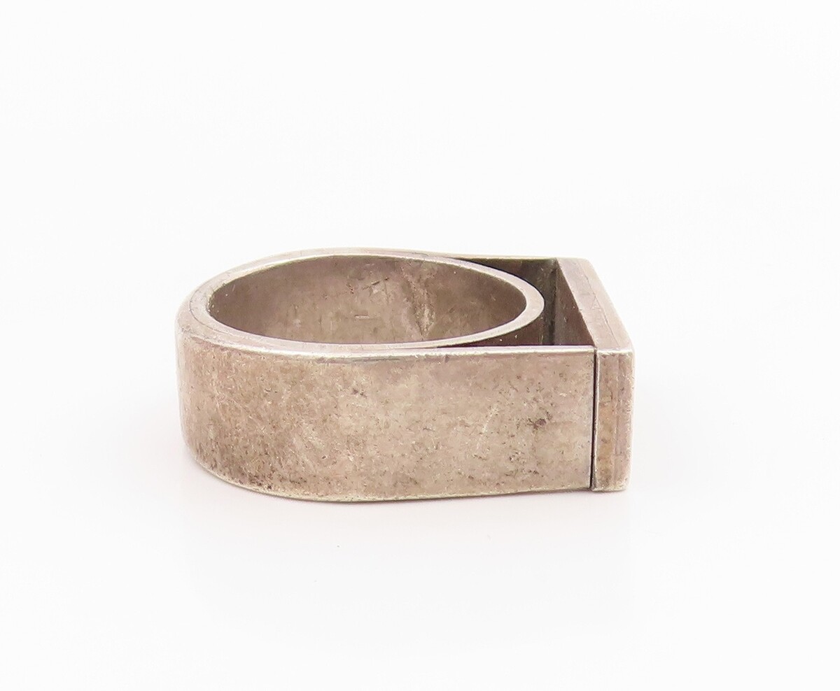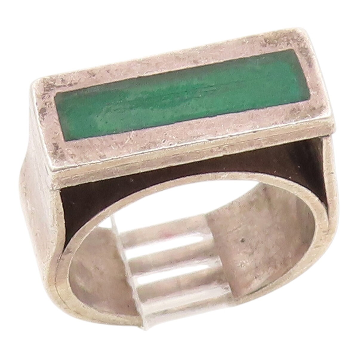 925 Sterling Silver Vintage Ring Green Enamel Rectangular Inlay Sz 5 RG35355