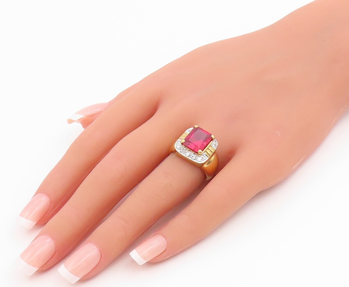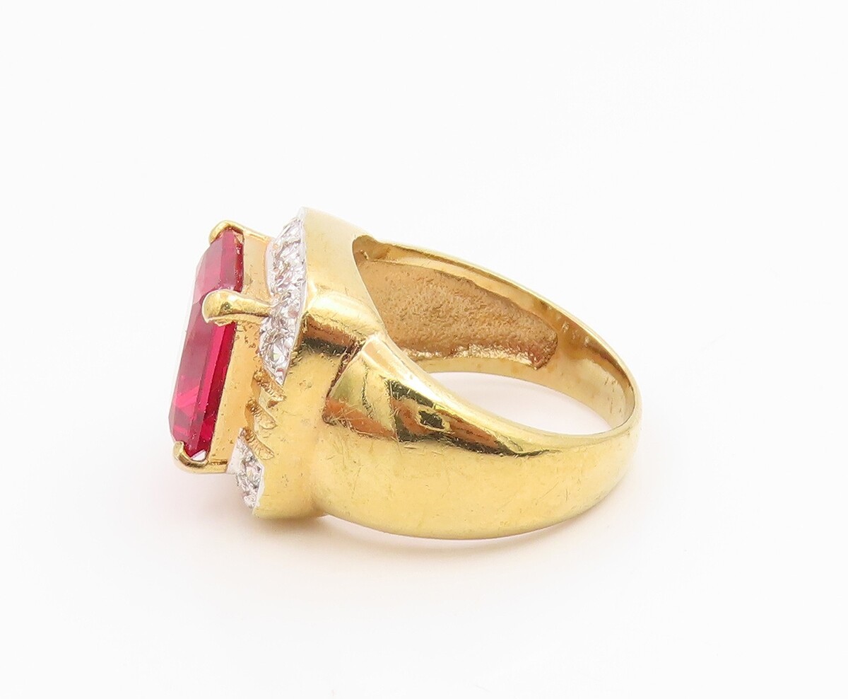 925 Sterling Silver Vintage Ring Gold Plated Ruby & Halo CZ Band Sz 7 RG35384