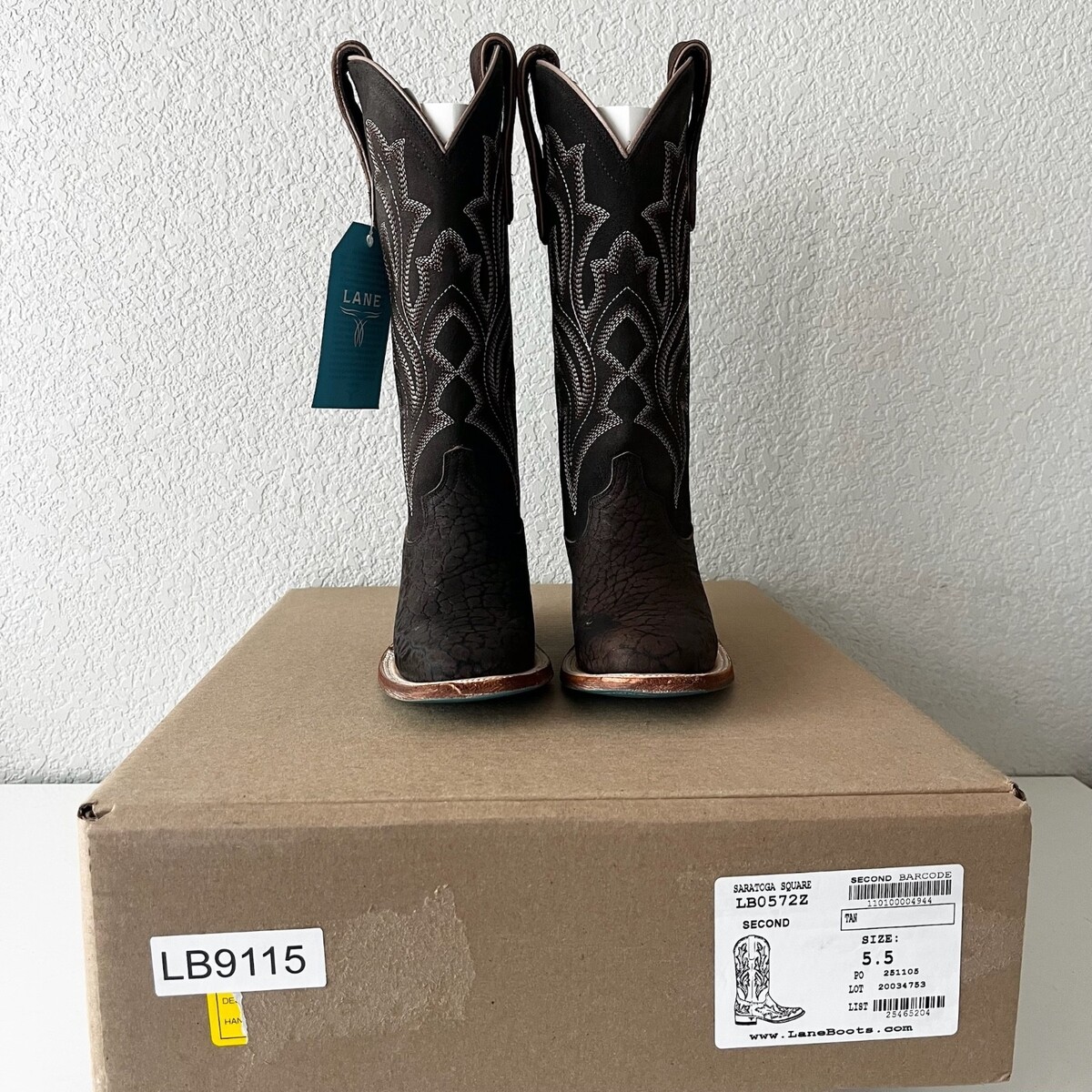Lane SARATOGA Square Toe Cowboy Boots Dark Brown Western Cowgirl Mid Calf 5.5