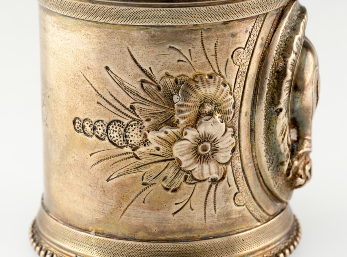 Silver Napkin Anneau Holder With Flora Pattern Trojan Praetorian Repousse