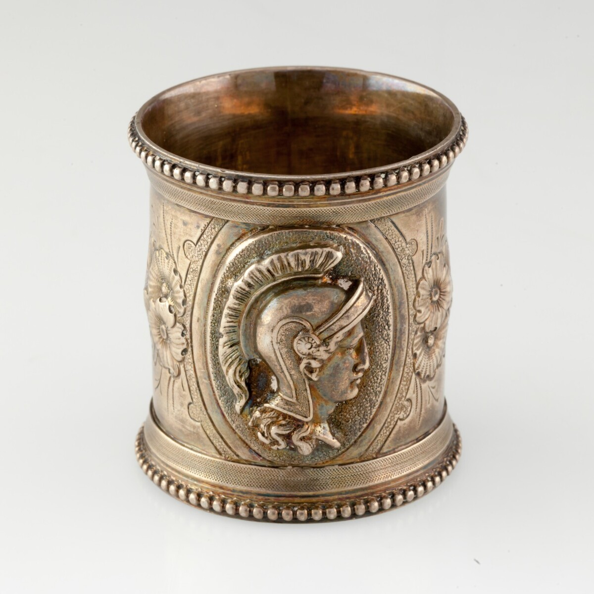 Silver Napkin Anneau Holder With Flora Pattern & Trojan Praetorian Repousse