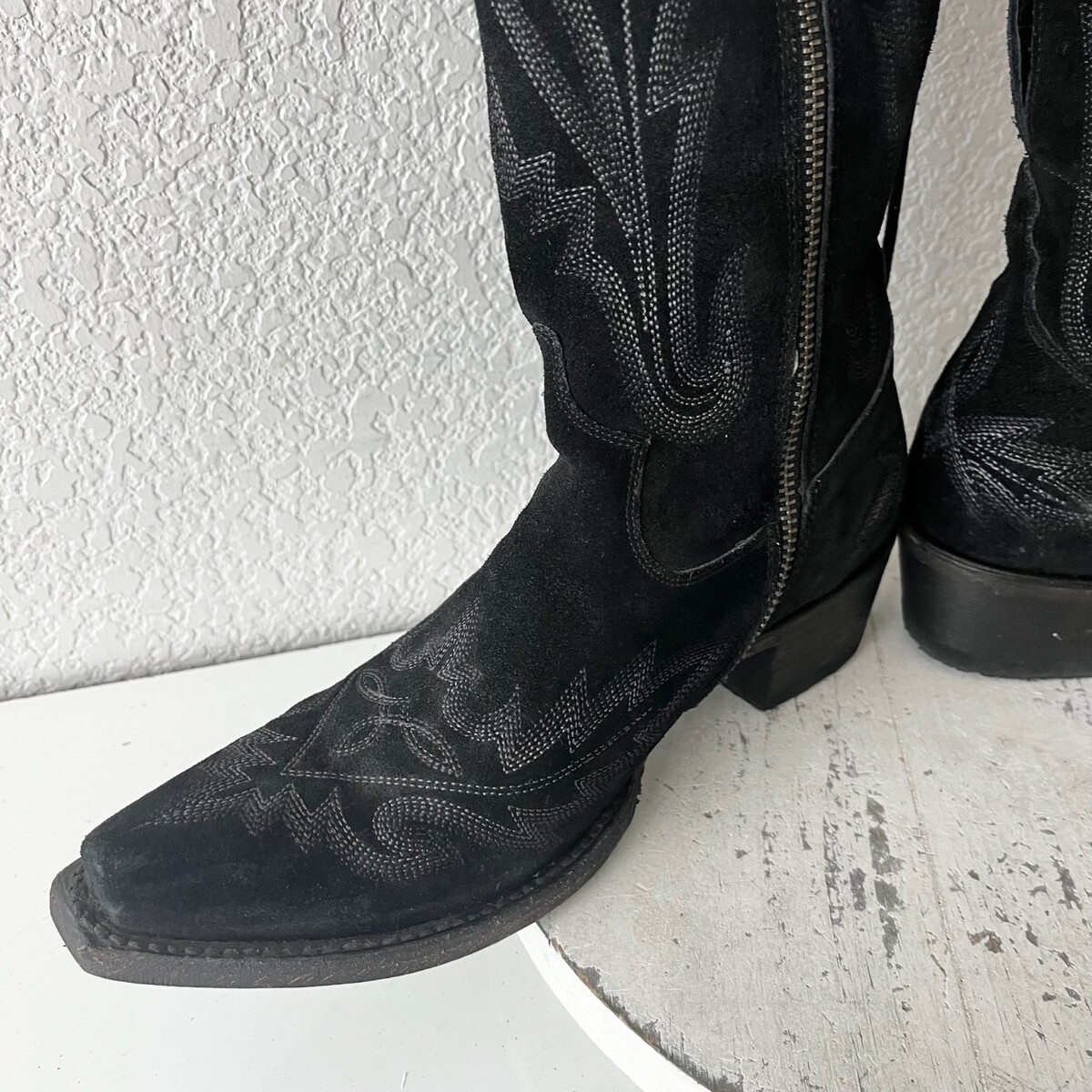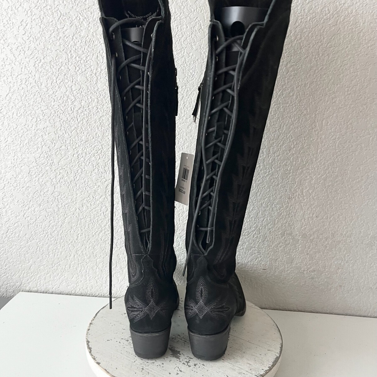 Lane LEXINGTON Over the Knee Cowboy Boots Black Suede Western Tall Snip Toe 7