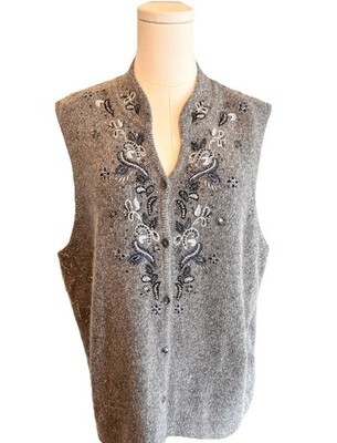CHRISTOPHER & BANKS Silk Angora Wool Sweater Vest XXL Gray