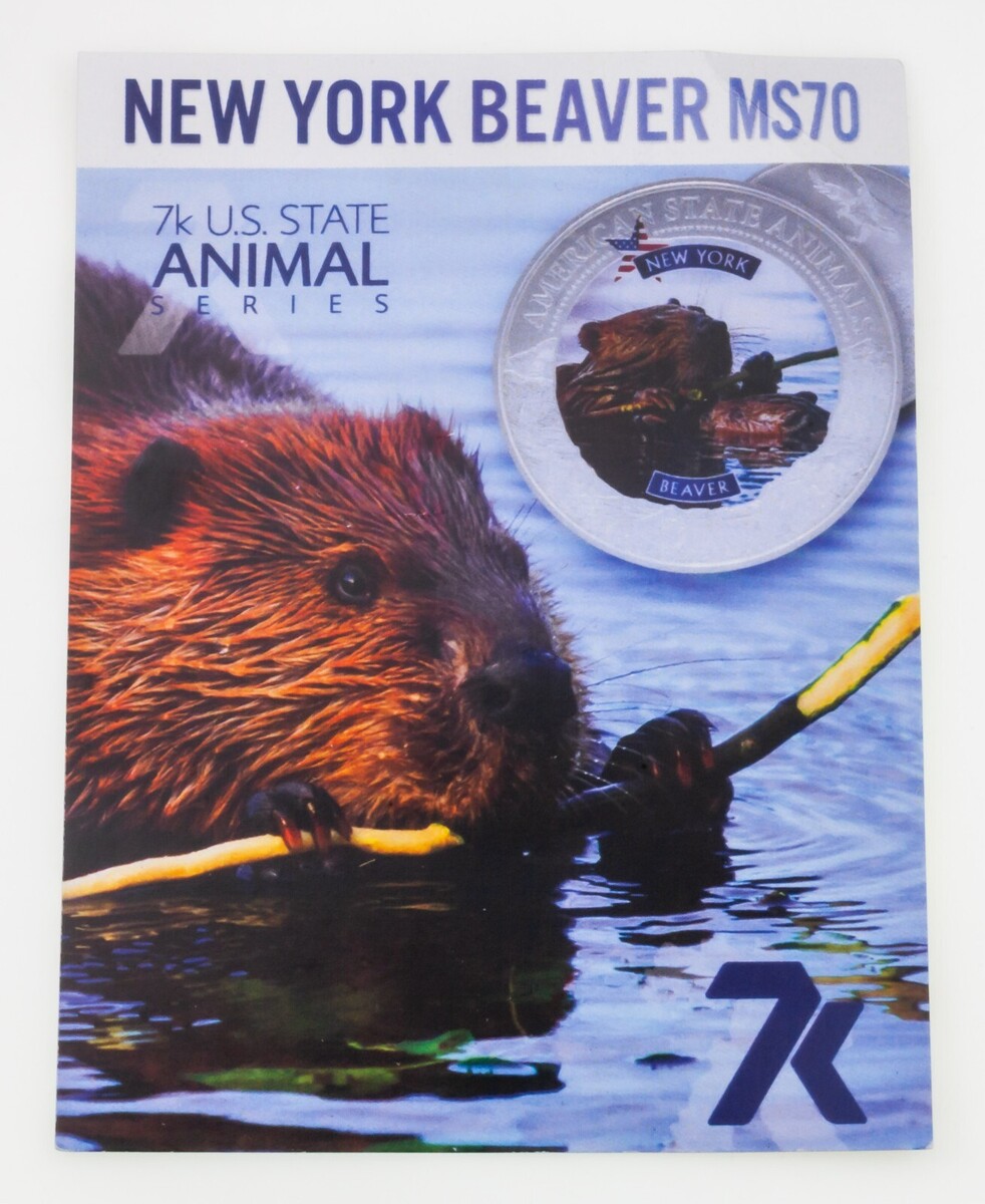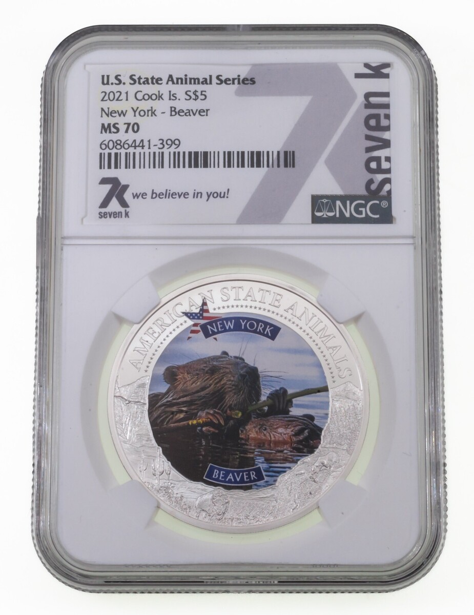 2021 Cook Islands S$5 US Animal New York 1 Oz. Beaver NGC MS-70
