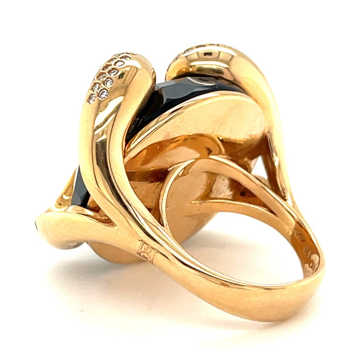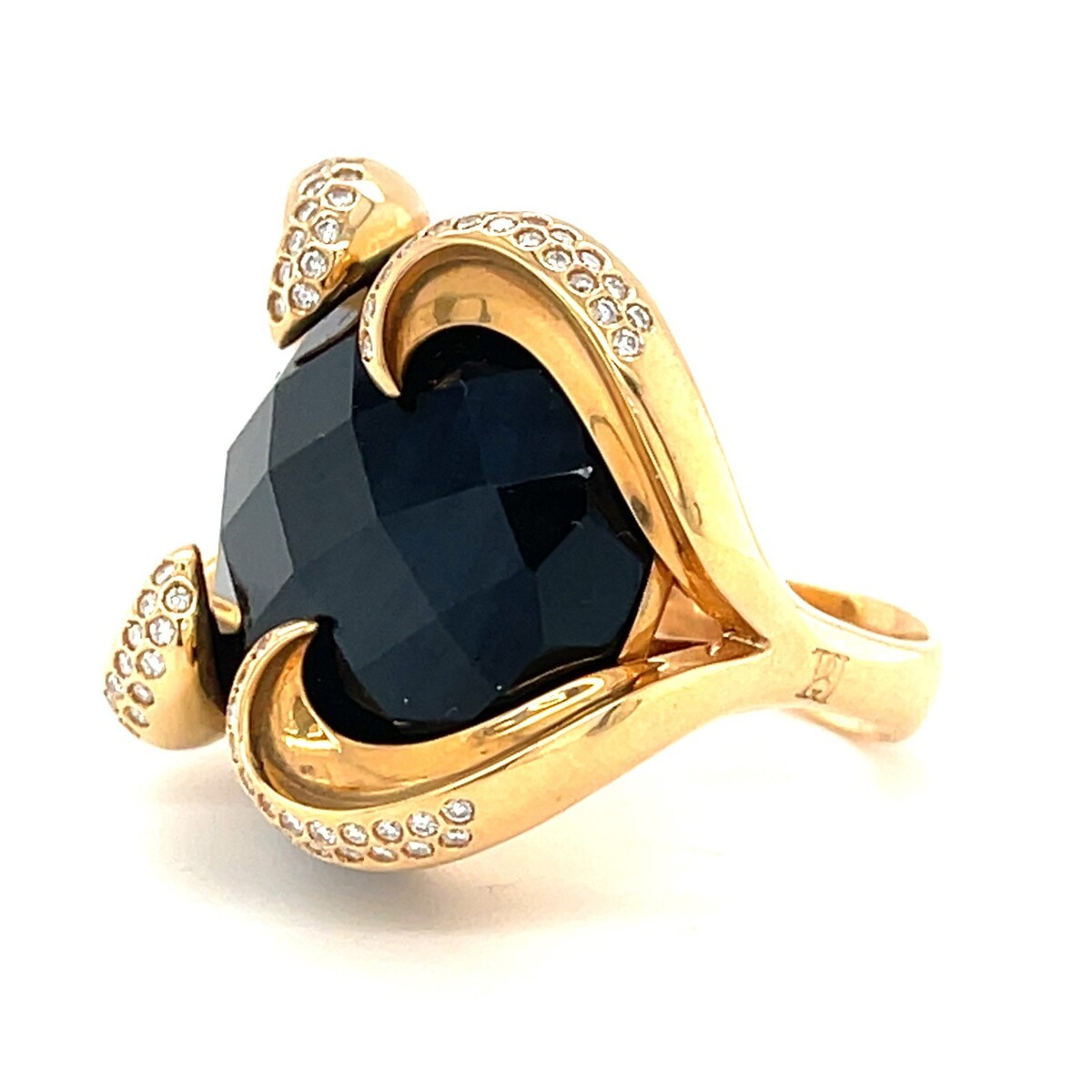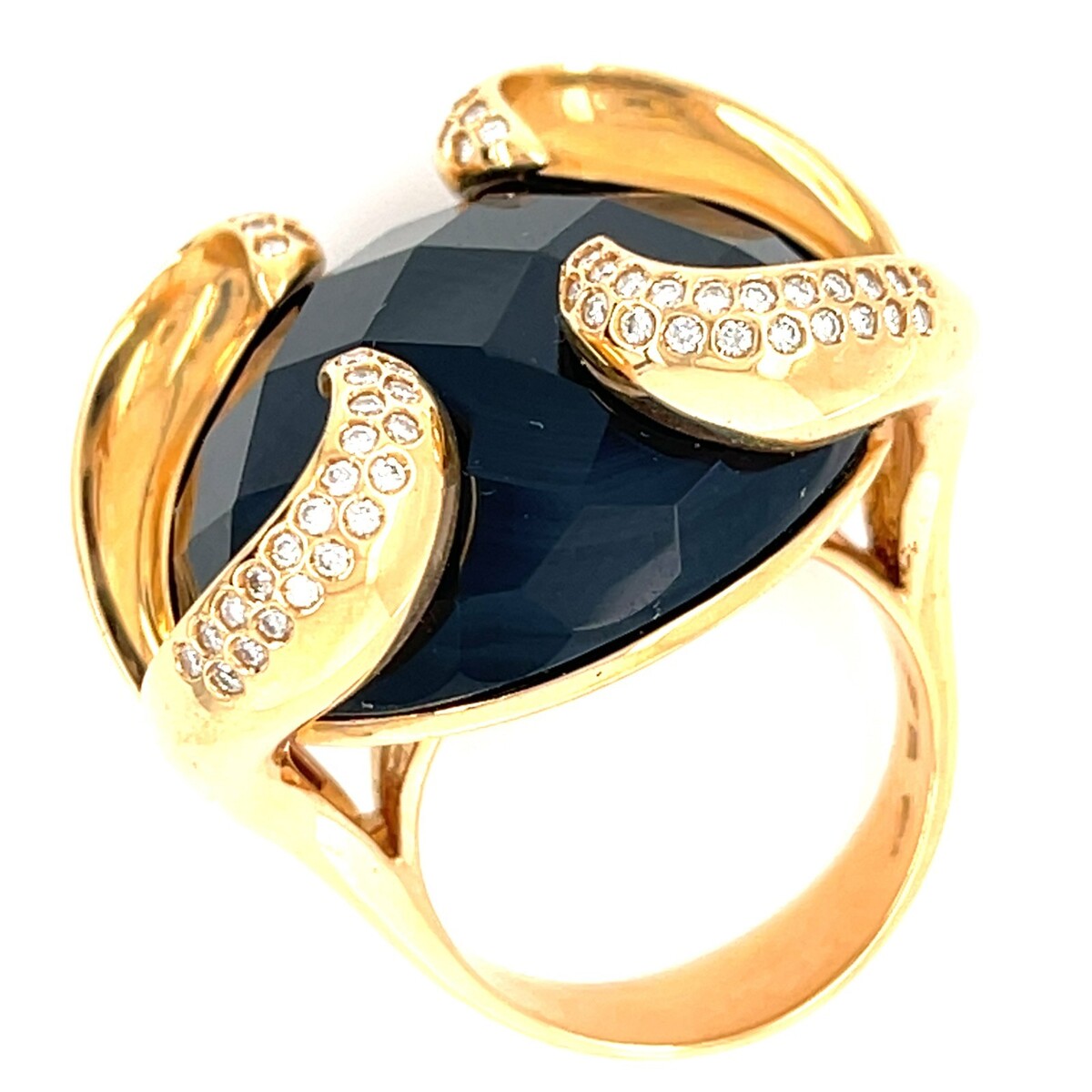 18k Rose Gold, Cabochon-cut Black Onyx and 0.35ct Diamond Ring Size 7 1/2 30.7g