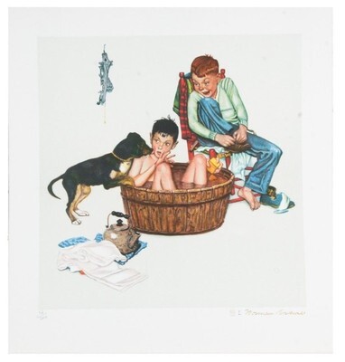 "Lickin' Good Bath" by Norman Rockwell Lithograph on Arches Paper Ettinger Inc