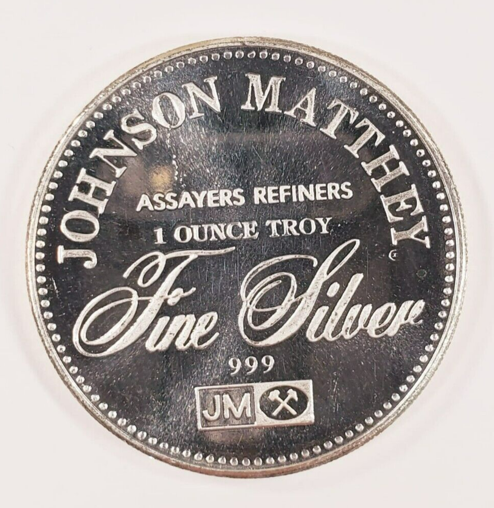 Reverso: Nombre "JHONSON MATTHEY" "Fine Silver" Logotipo de JM debajo