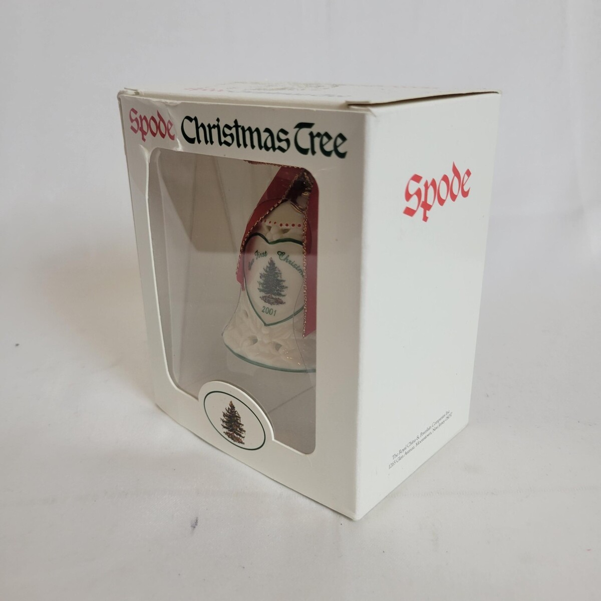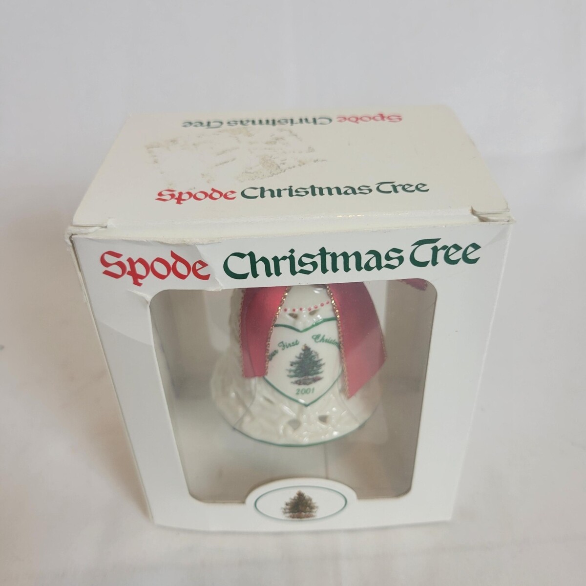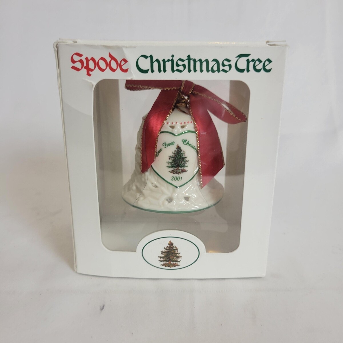 Spode Christmas Ornament Porcelain Our First Christmas Bell Ornament 2001 NEW