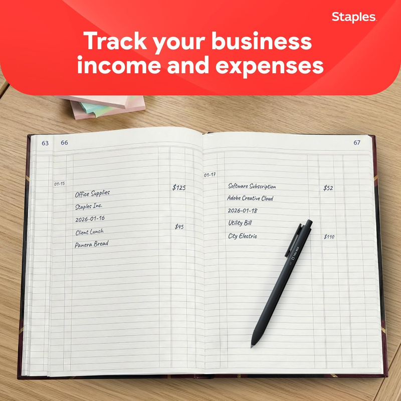 Black Ledger Book, Hardbound Accounting Record Book, 11‑3/4" X 7‑5/16",