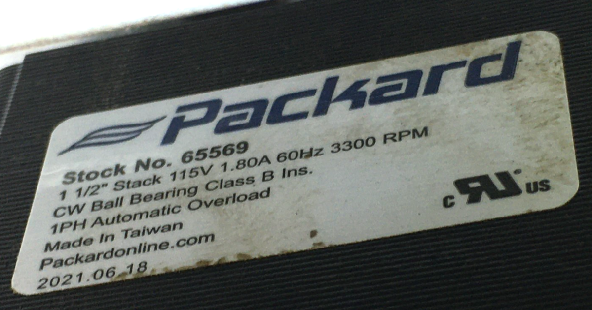 This is Packard 65569 Furnace Inducer Motor Assembly 1/2'' 115V 1.80A 3300 RPM 60Hz used part.