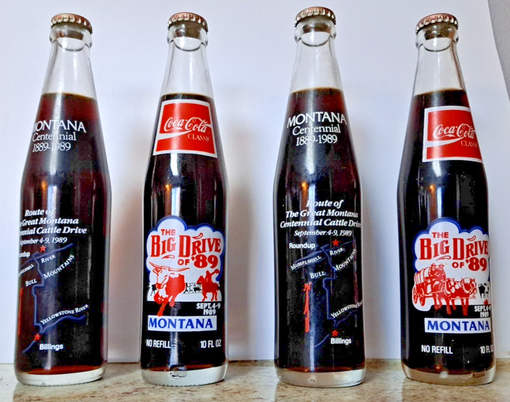 (4) Four Vintage Commemorative Coca-Cola Classic The Big Drive of 89 Montana 10 oz. Bottles