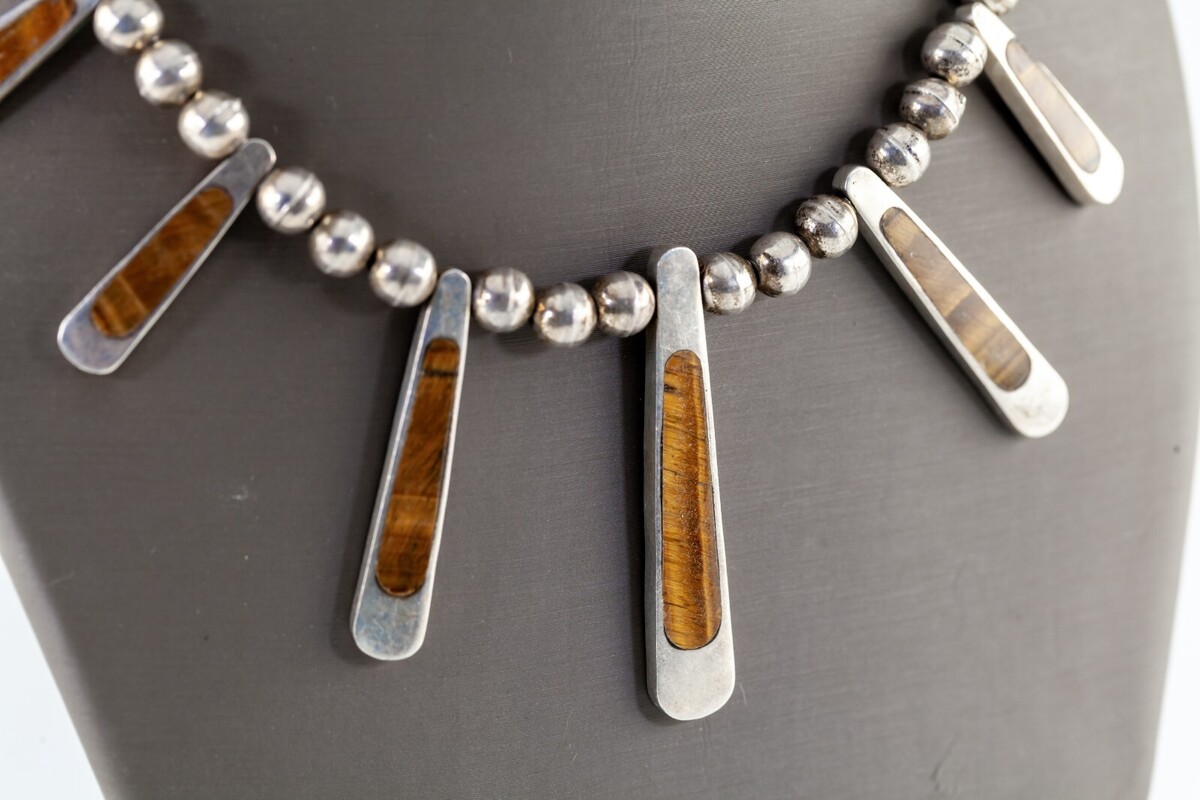 Mexico Sterling Silver Tiger Eye Bib Bead and 50 similar items
