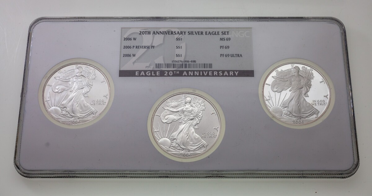 2006 20th Anniversary Silver American Eagle Set MS69 PF69 PF69 Ultra