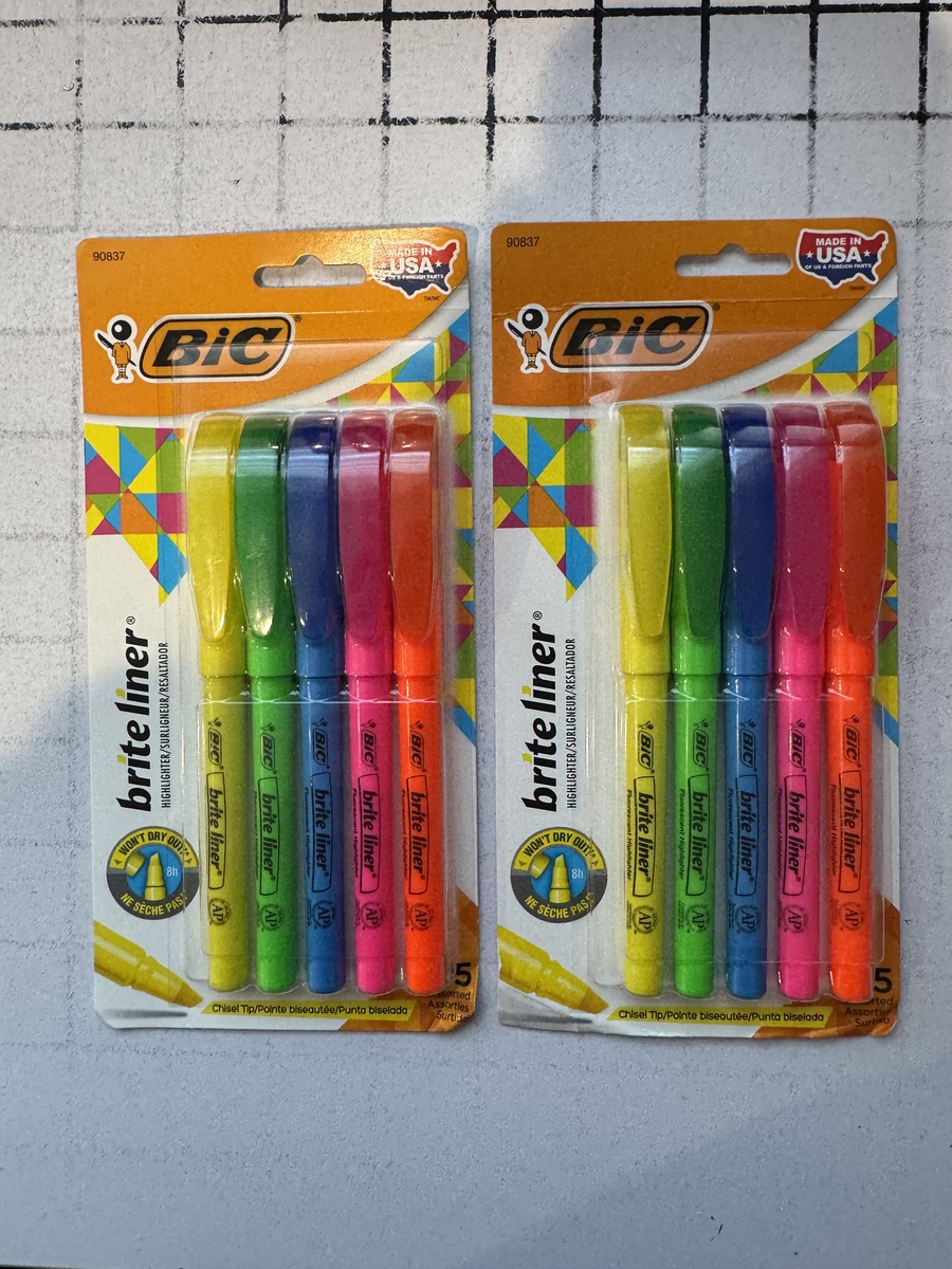 BIC Brite Liner Highlighter, Chisel Tip, Assorted 2 SETS OF 5