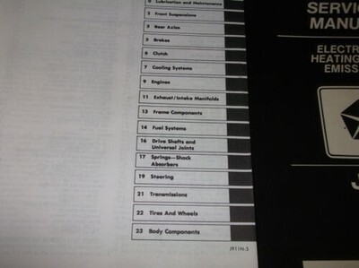 1991 Jeep MODELS Factory Service Manual ENGINE/CHASSIS/BODY/ELECTRICAL/HEATING/AC/FUEL EMISSIONS/DIAGNOSTICS MANUALS,and the Technical Service Bulletins Manual.