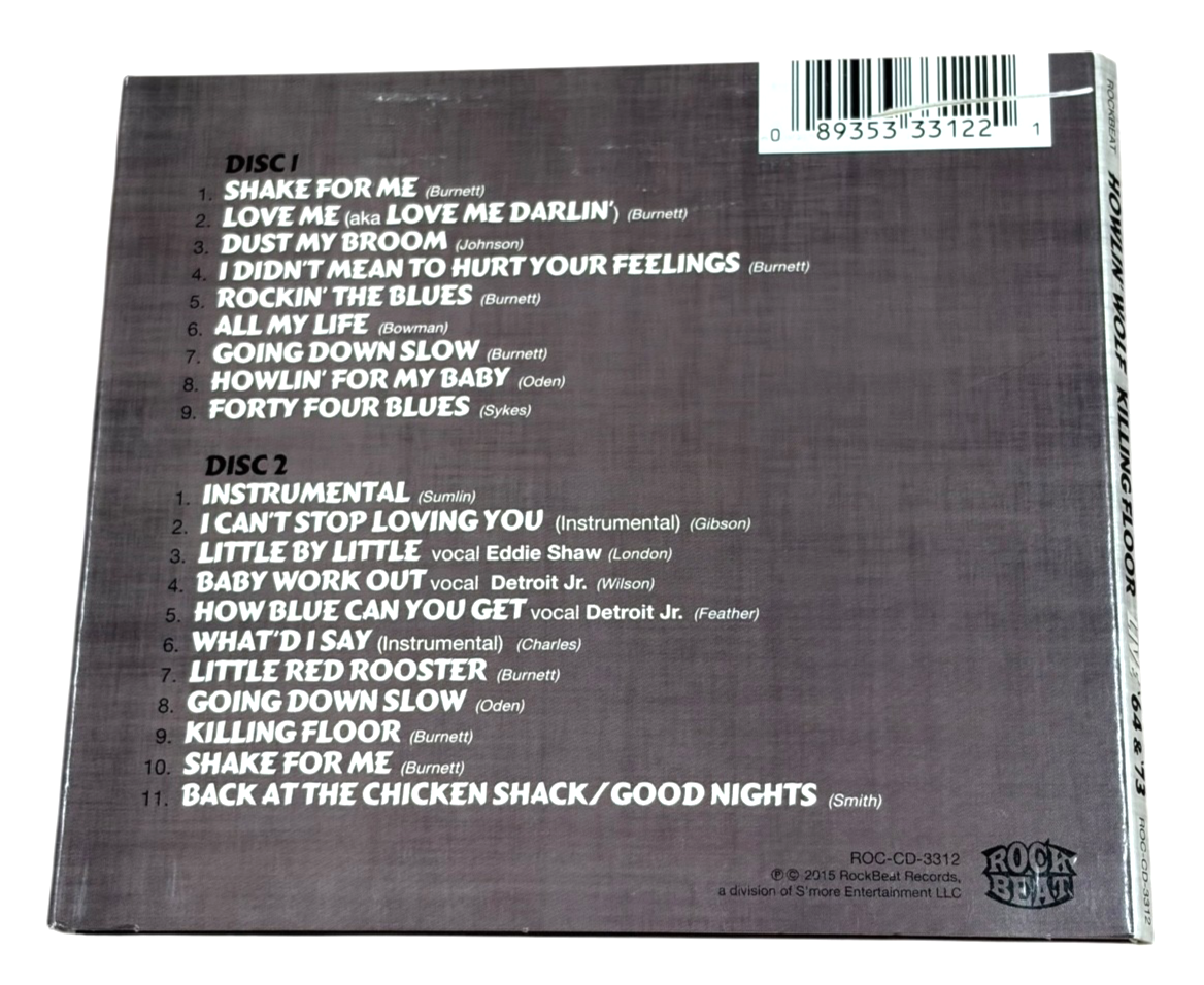 Howlin' Wolf Live Blues CD Killing Floor 1964-1973 Chester Arthur Burnett 2 Discs. Discs are near mint to mint. Cardboard case has a slice through the barcode. From a non-smoking home.