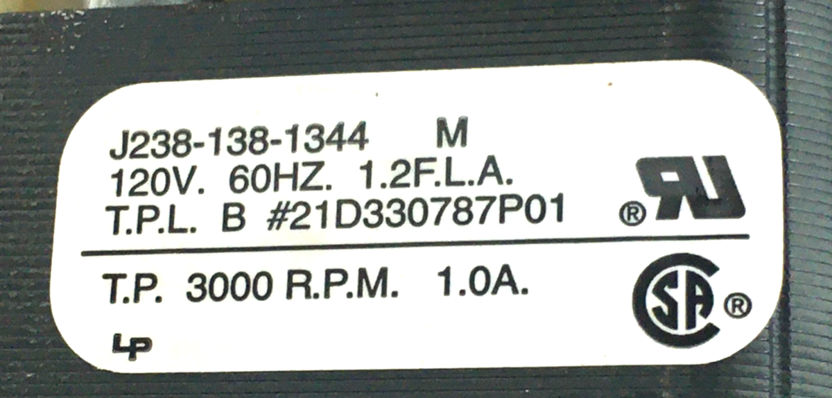 This is JAKEL J238-138-1344 Draft Inducer Blower Motor 21D330787P01 120V 3000 RPM used part.