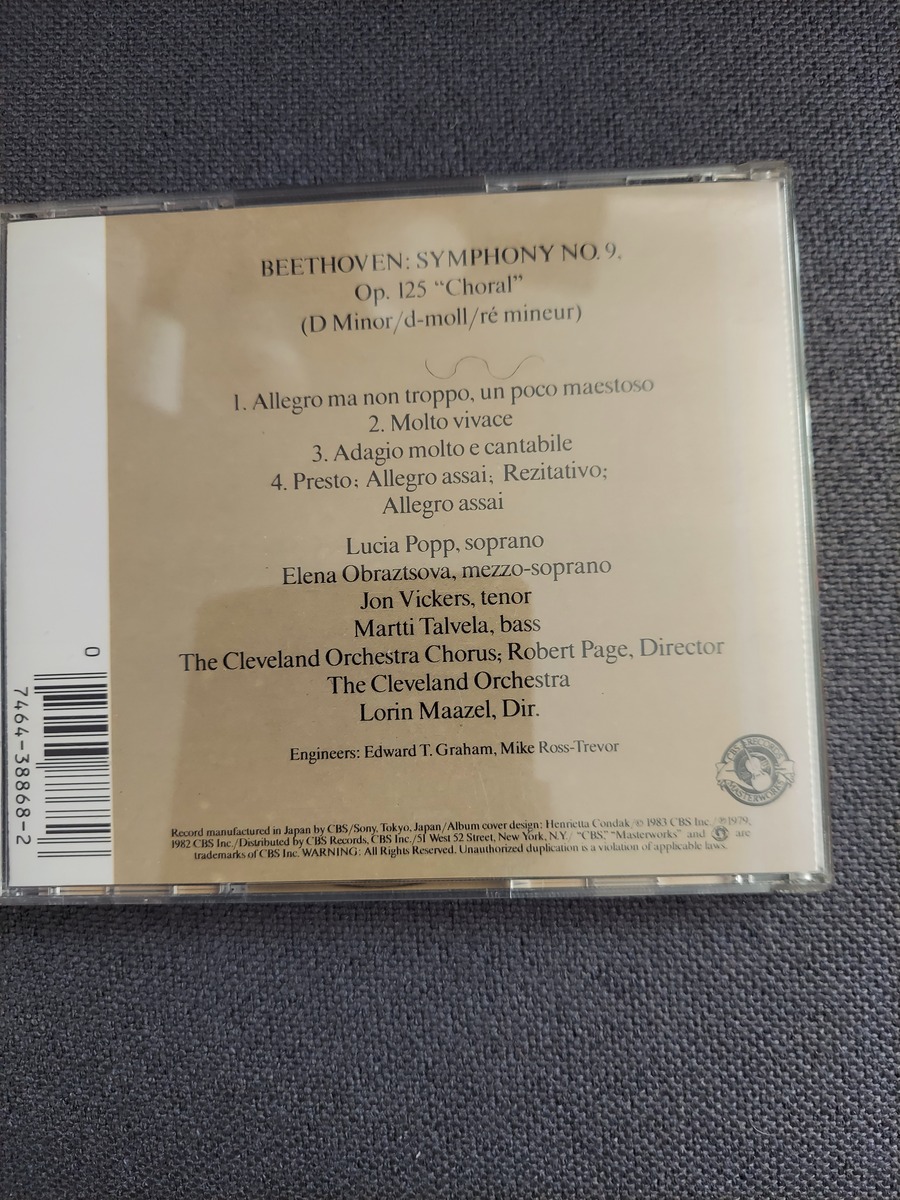 BEETHOVEN Symphony #9 - LORIN MAAZEL, Cleveland - CBS CD 1983, Vintage