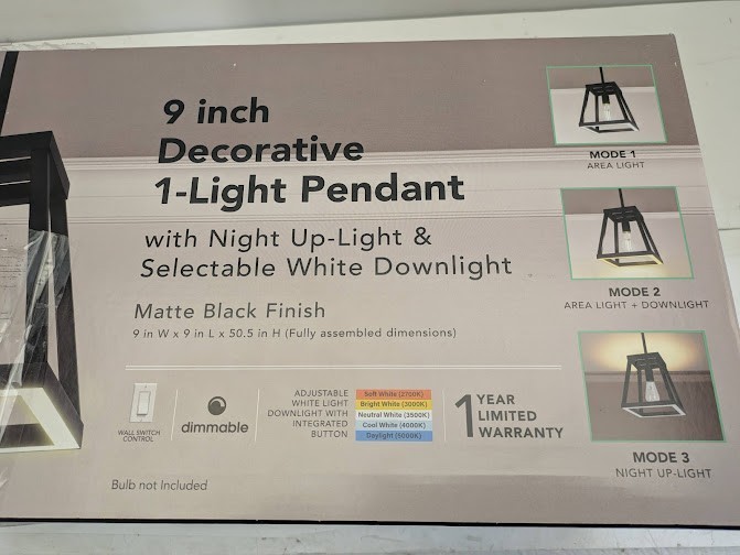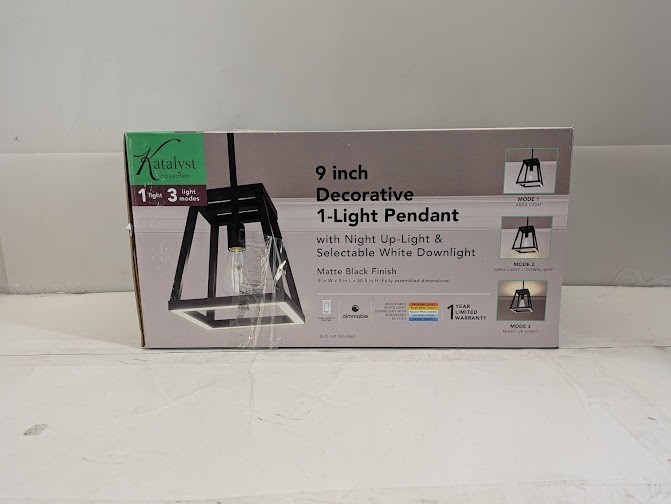 A versatile light fixture with 3-light modes, perfect for multi-use rooms and accommodating various activities in the same room throughout the day. The Feit Electric Katalyst Collection LED Decorative Single Light Pendant transforms the mood of shared-use spaces whenever you need it. Combining a traditional aesthetic with modern energy-saving LED technology, the sleek lines and matte black finish perfectly complement contemporary or traditional home decor styles. Add your favorite separately sold Medium E26 base light bulb and let the fixture do the rest. Choose from 3-light mode options depending on the activity. Entertain guests by switching ON the bulb using area light mode. The area light illuminates your space with 800 Lumens based on 1-800 Lumens bulb. Get work done by lighting the area light and downlight together with 1600 combined Lumens. You can even tailor the mood of the downlight by adjusting between Soft White 2700K, Bright White 3000K, Neutral White 3500K, Cool White 4000K and, Daylight 5000K. Wind down the day by turning ON the night up-light and switching to 40 Lumens of soothing 2200K warm white light that makes the room cozier. Further customize your lighting by dimming the area light and area light with downlight using an existing dimmer. Say hello to the optimal light for work, play, relaxing and entertaining with the Katalyst Collection LED light fixture. The perfect transformative lighting fixture for contemporary households.
