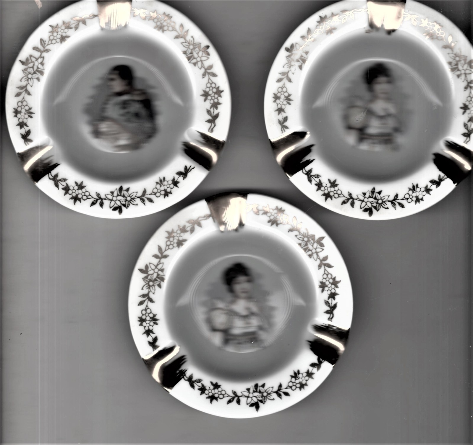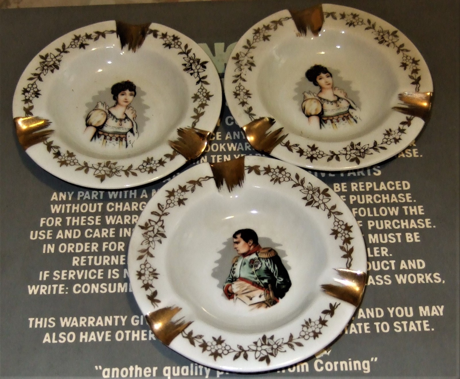 Limoge - vintage Napolean & Josephine set of three Ashtrays