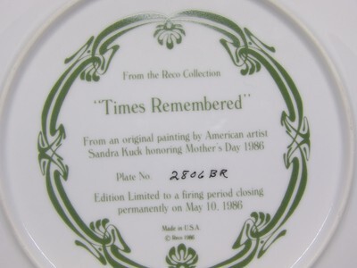 Vintage 1986 Sandra Kuck “Times Remembered” Plate No. 2806BR Fine China