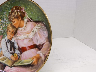 This is a vintage 1986 Sandra Kuck collector plate from the Times Remembered series, featuring Kuck?s signature soft?focus Victorian?style artwork. The scene depicts a tender moment between a woman and young boy reading together, surrounded by floral detail. Plate Number 2806BR.