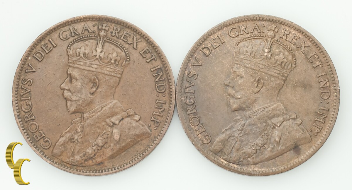 1914 y 1917 Canada Un Centimo 1C Lote de 2 Monedas