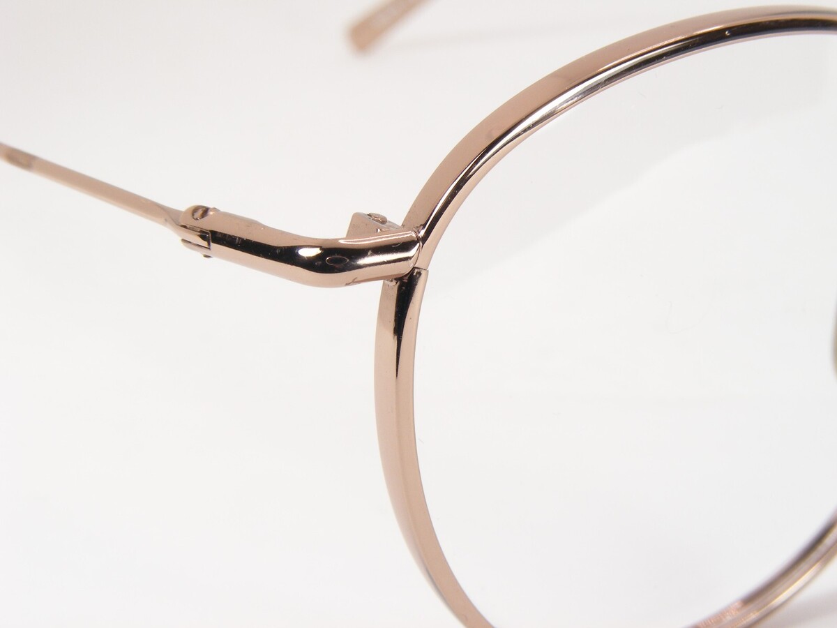 Frontale con profilo spesso e ponte in titanio color oro. Bracci in titanio. Naselli regolabili in titanio. Fatto a mano.