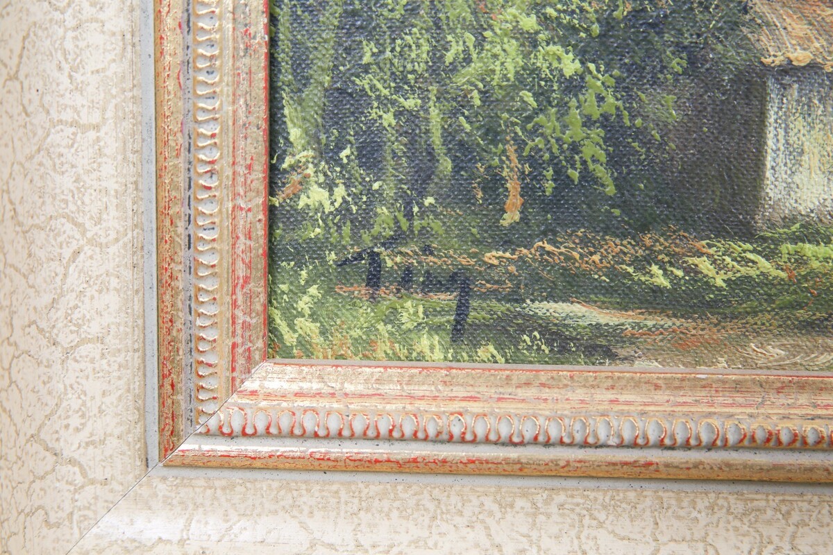 "Untitled" (Cottage by the Sea) Oil on Canvas by Ting, Framed 15x13"