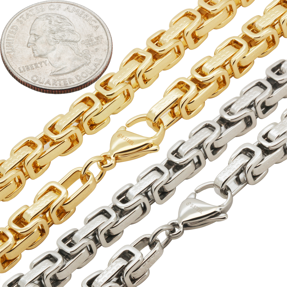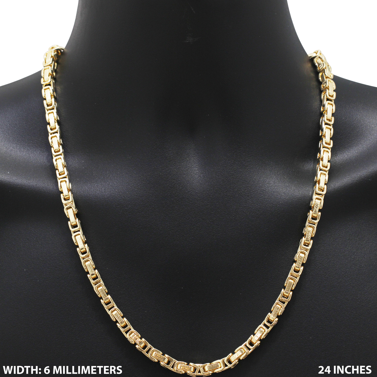 316L Stainless Steel 14k Yellow GP 6mm Byzantine Chain Necklace Bracelet 8”-24”