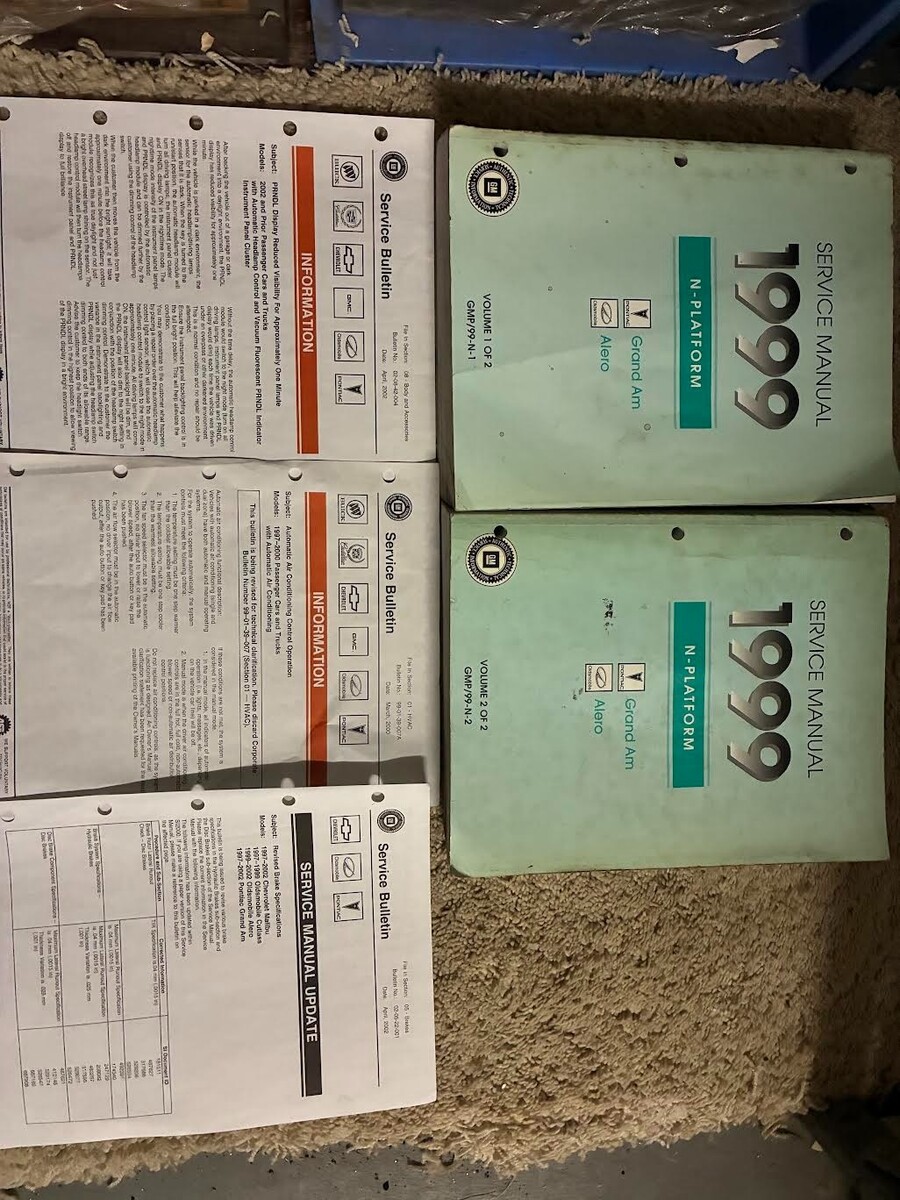 1999 Pontiac Grand AM/OLDSMOBILE ALERO Service Manual set and The bulletin page