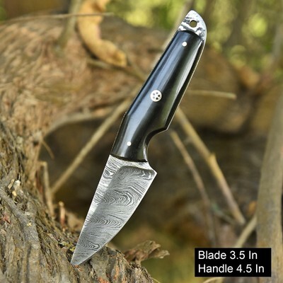 Custom Damascus Steel Fix Blade knife - Tactical Skinner - Bull Horn Handle