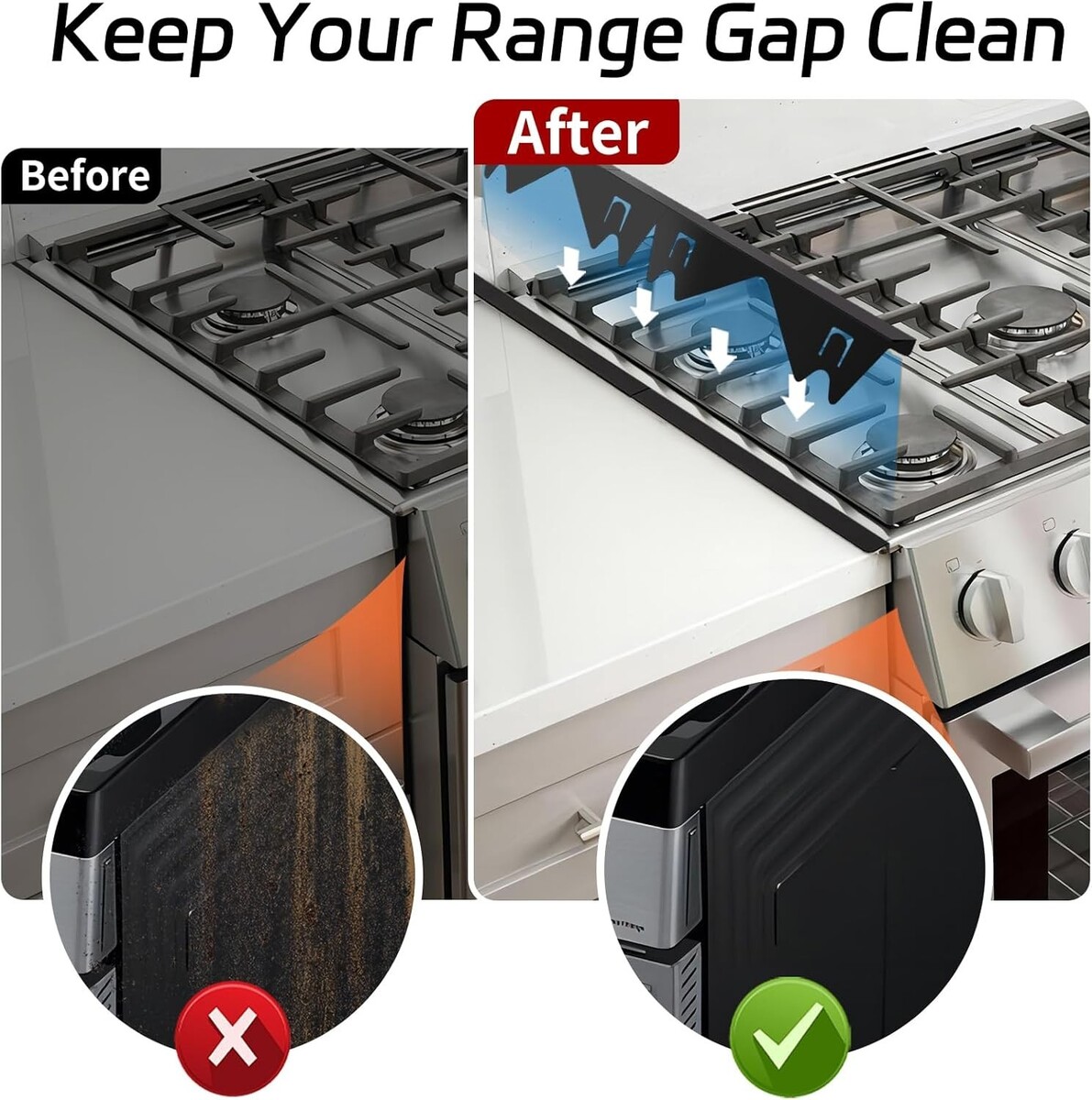 Effective Gap Filler: Eliminate stubborn gunk and debris in the unsightly space between your stove and countertop or oven, ensuring a cleaner and more hygienic cooking area.