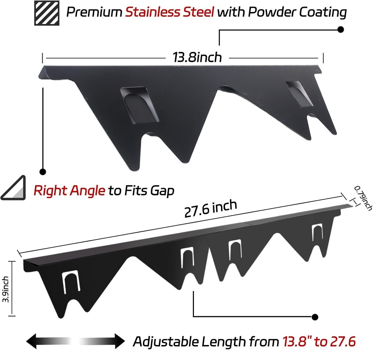 Adjustable Size: These covers can effortlessly adjust from 13.8 inches to 27.6 inches, fitting seamlessly into gaps less than 18mm (0.7 inches) and greater than 2mm.