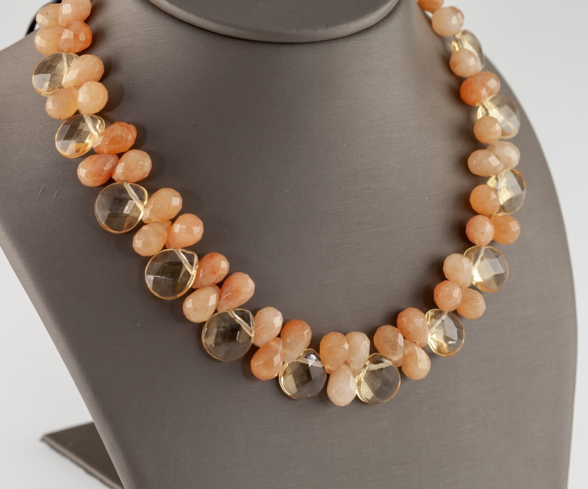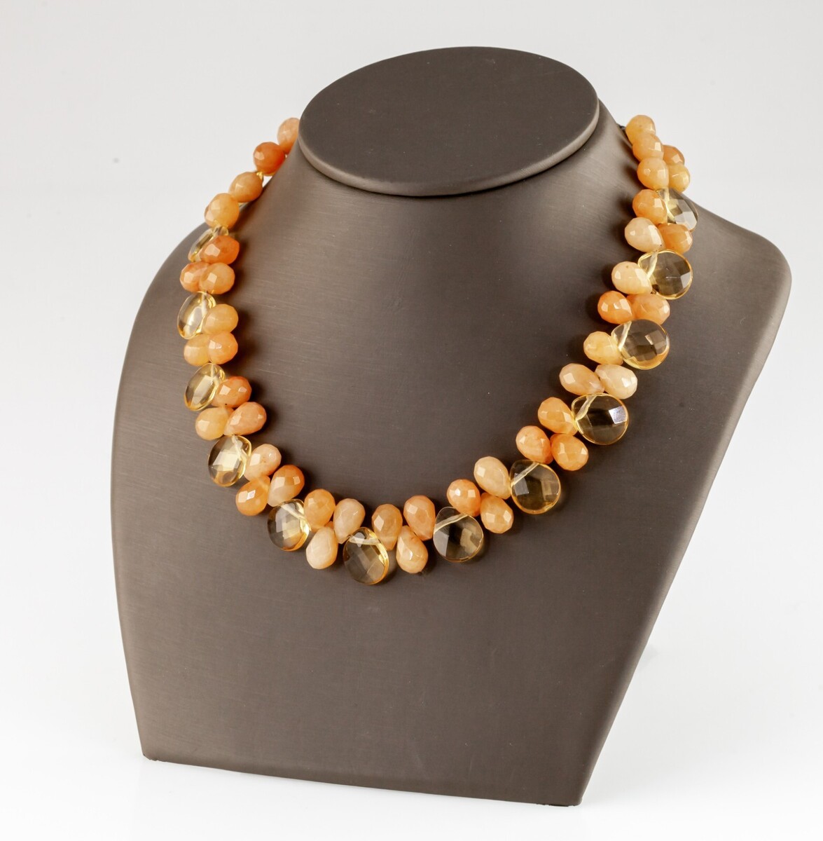 Features Briolette Cut Citrines in Alternating Bib Pattern